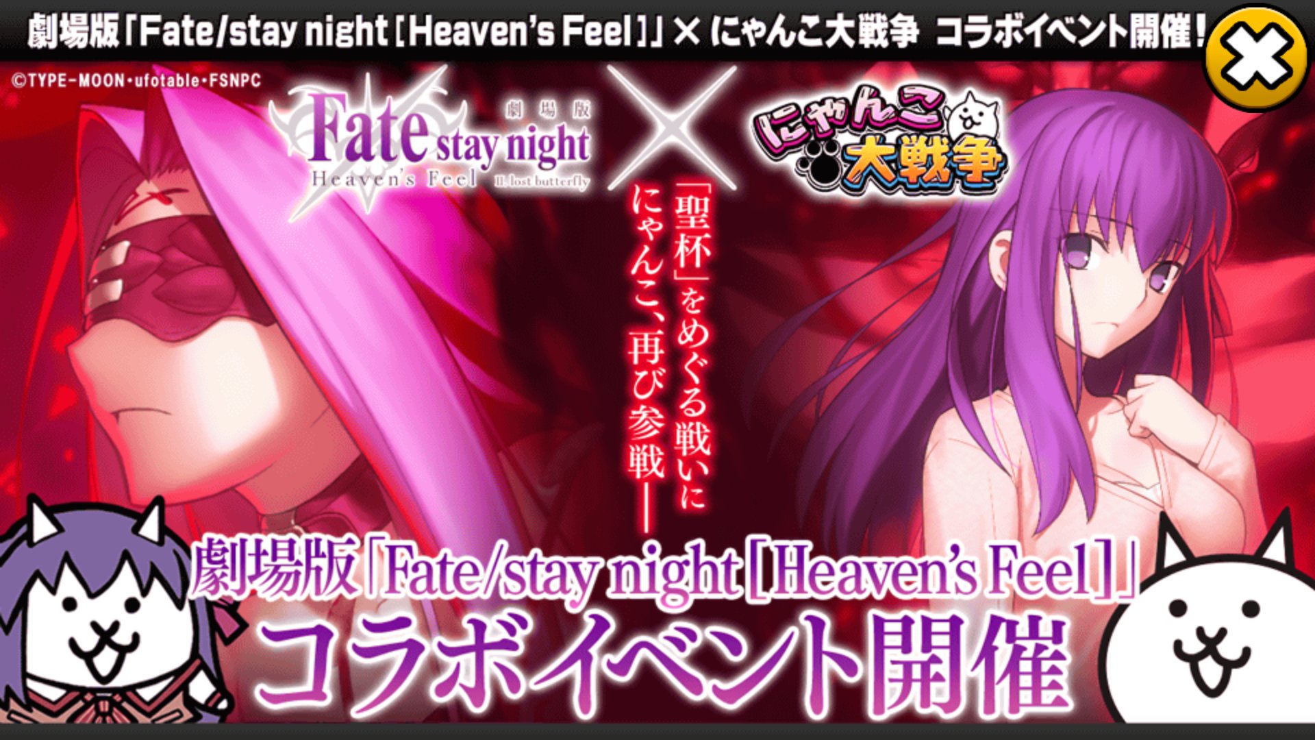 劇場版 Fate Stay Night Heaven S Feel にゃんこ大戦争 新要素を追加した復刻コラボ イベント開催に関するお知らせ ポノス株式会社のプレスリリース